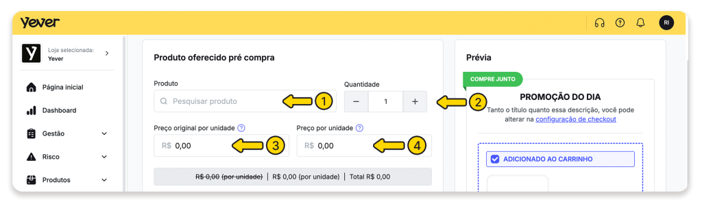 Painel Yever → Checkouts e selecione o checkout desejado.