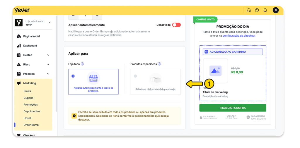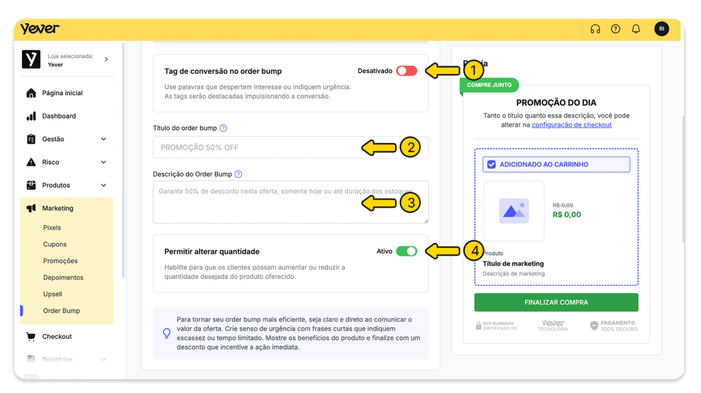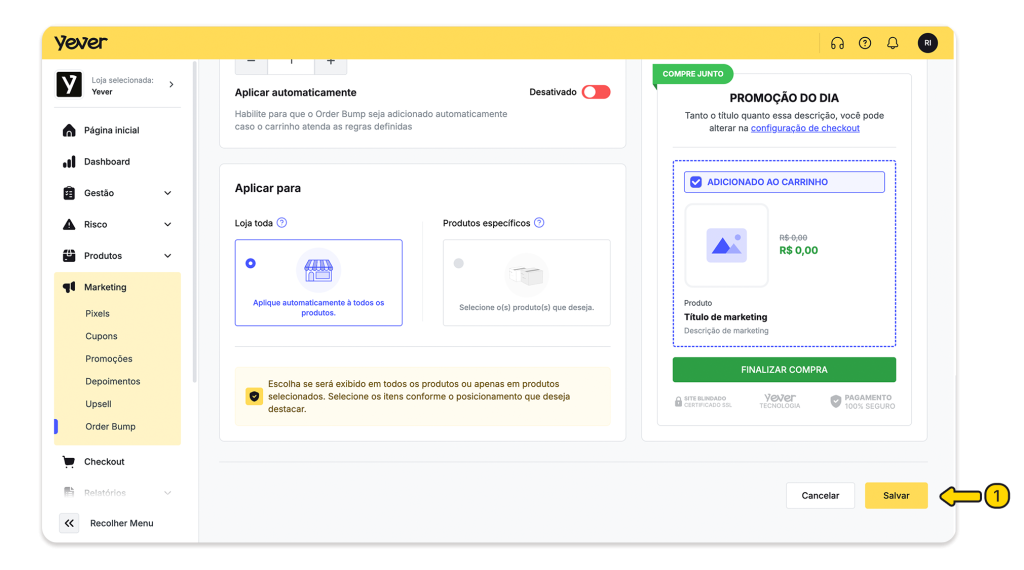 1. Acesse Marketing → Order Bump